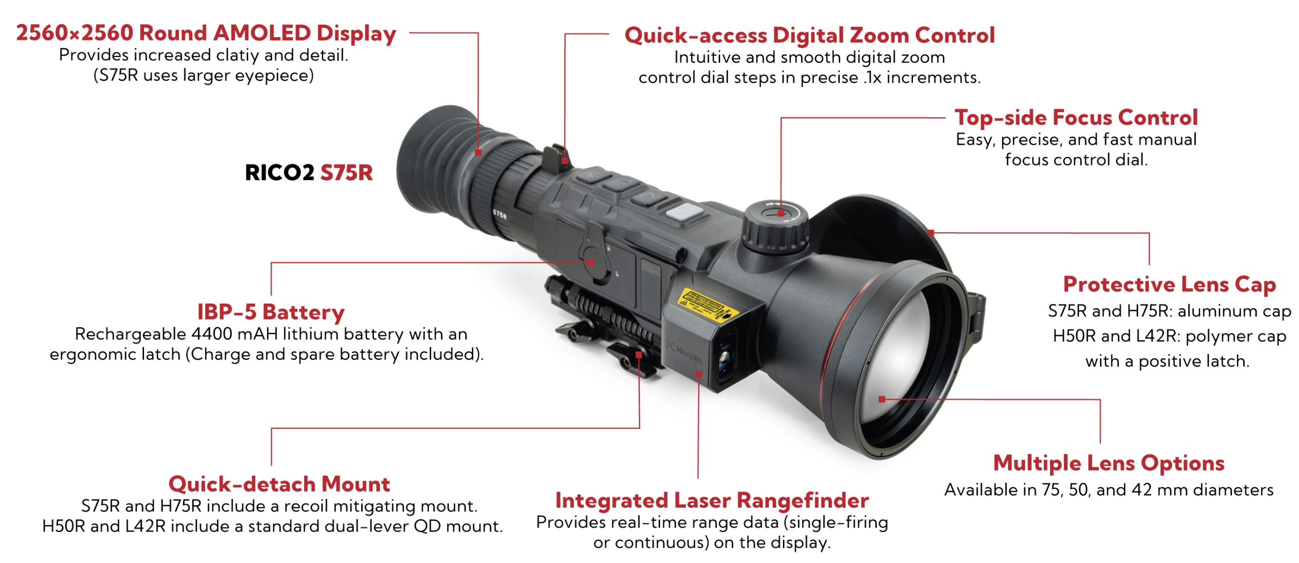The RICO2 S75R is for those who push the limits of thermal hunting optics, seeking extreme detection range and pinpoint precision, without sacrificing comfort or ergonomics. If you want your thermal scope to perform like a long‑range sniper’s tool and still feel natural over hours in the field, the S75R is built for you.